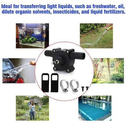 Galingas vandens siurblys, išsiurbiantis vandenį ir kitus skysčius. Prijungiamas prie rankinio grąžto.