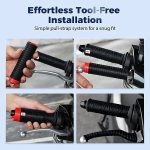 Tiesiog patraukite vidinį atraminį dirželį, kad rankena tvirtai užsifiksuotų ant vairo per kelias sekundes.